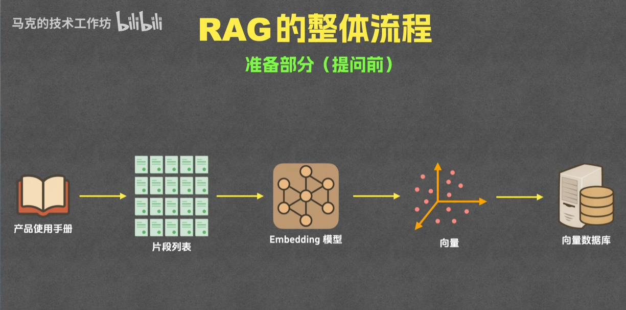 - 索引:通过Embedding将片段文本转换为向量,再将片段文本和片段向量存入向量数据库
